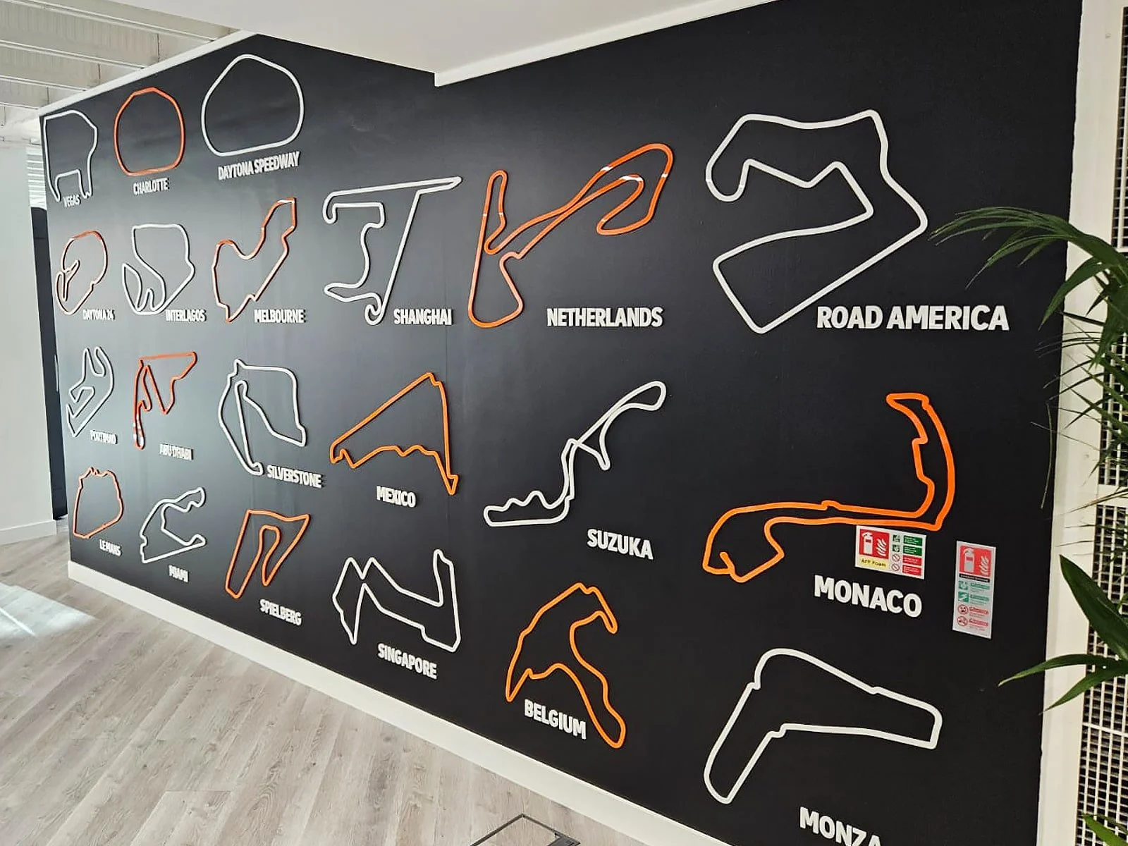 The transformation of Catapult London’s office began with the installation of a custom-designed neon sign facing the main entrance. The cool white illumination set against a sleek black wall created a bold and modern visual, ensuring the Catapult brand made an immediate impact on visitors and employees alike. This dynamic feature embodied the company’s forward-thinking nature and cutting-edge approach to sports science.