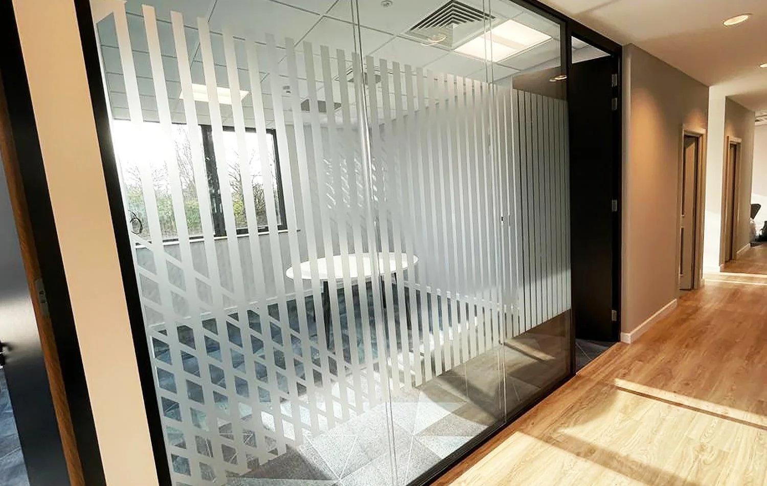 Take your office interior decor to the next level with bespoke designed window manifestations and glass partition decorative films from Signs Base.